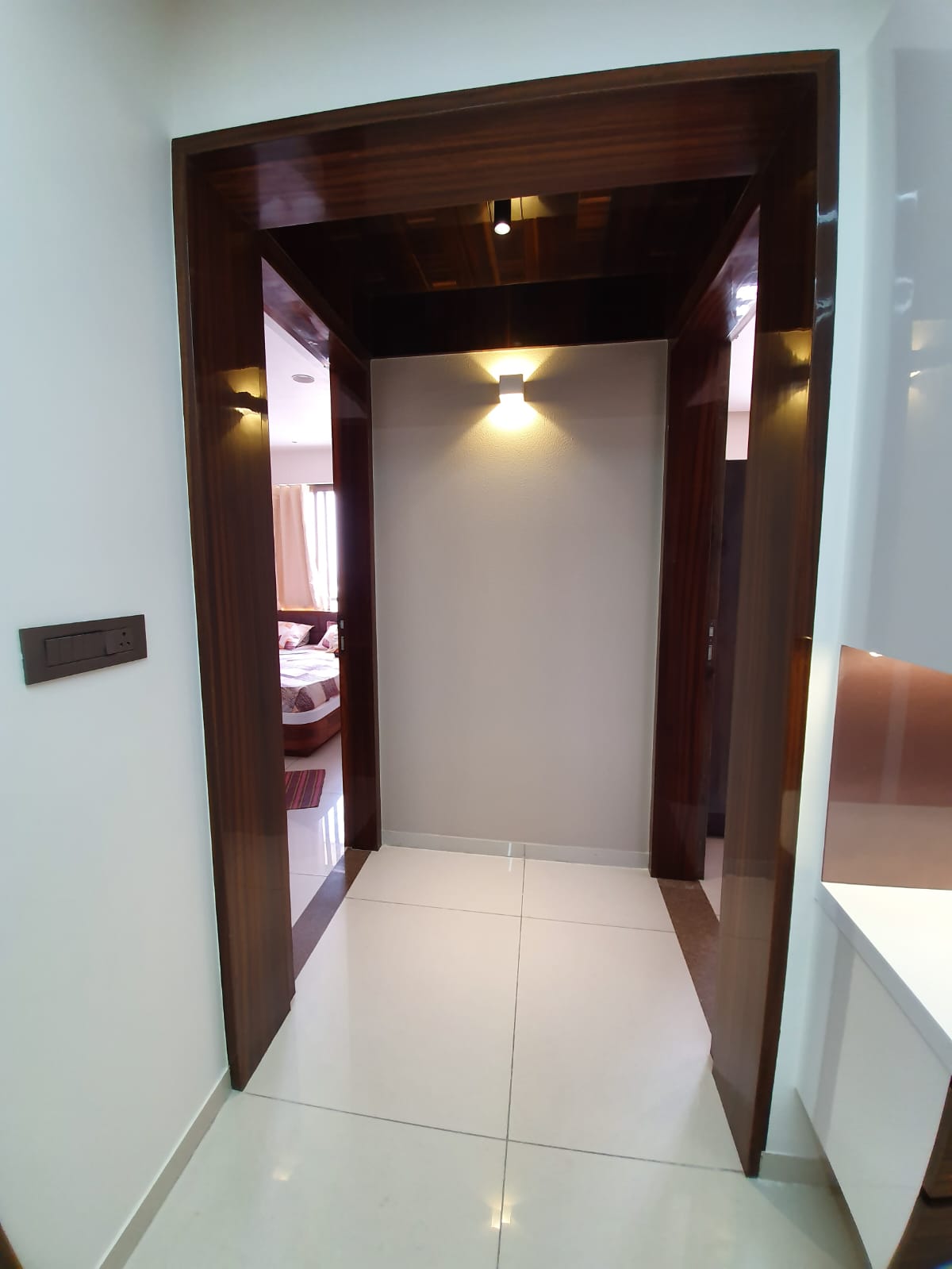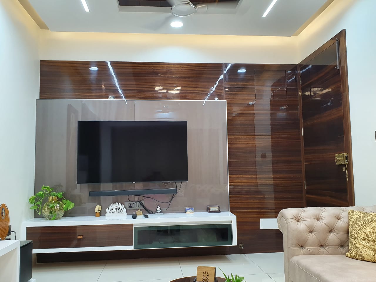 - ✔ Modern Kitchen: Equipped with a modular kitchen, back-painted glass, soft closure features, and tandem drawers.